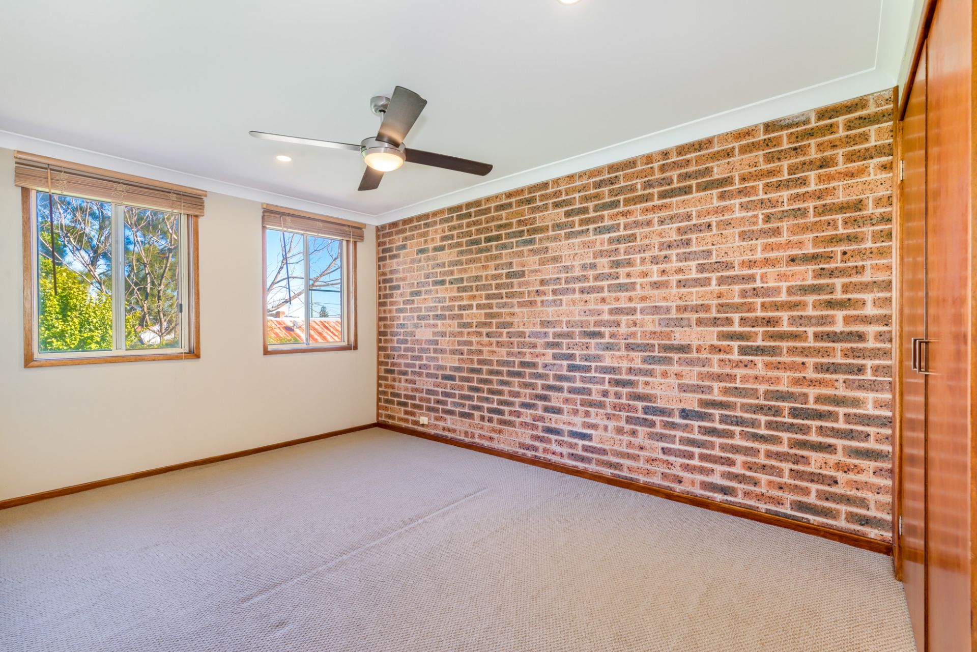 * Timber flooring with carpet in bedrooms.