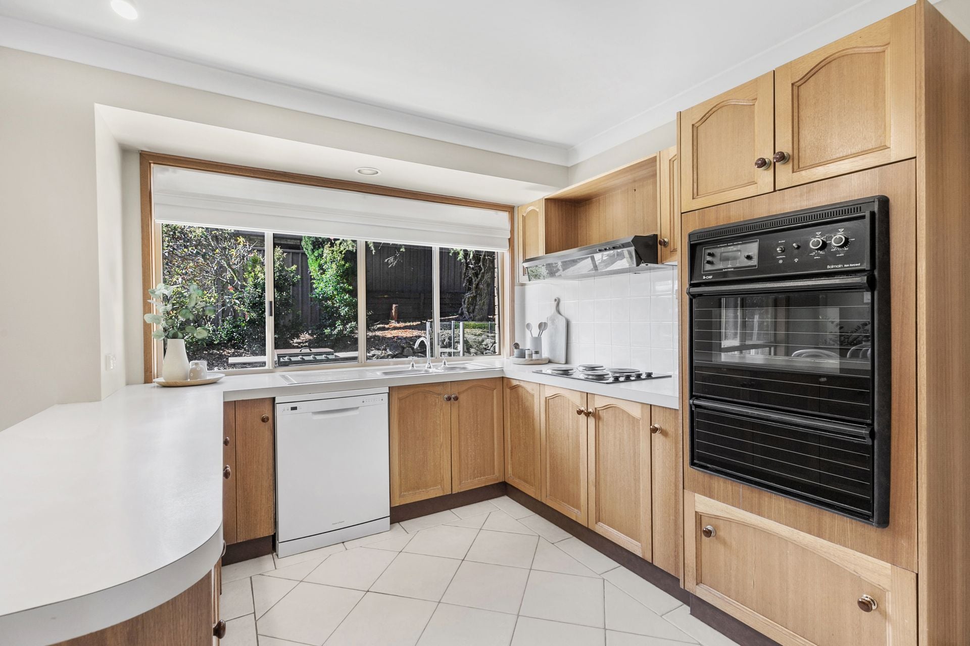 * Generous timber kitchen with electric cooktop and dishwasher.
