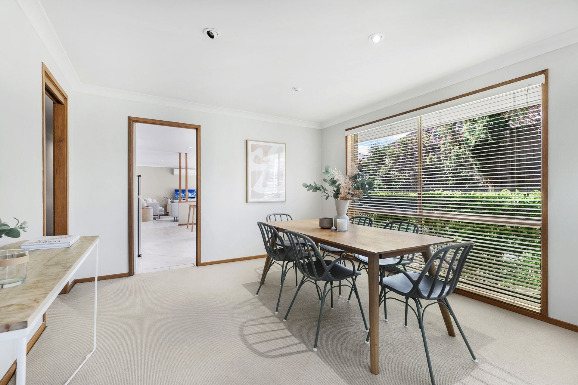 * Living, dining and open plan family and meals rooms.