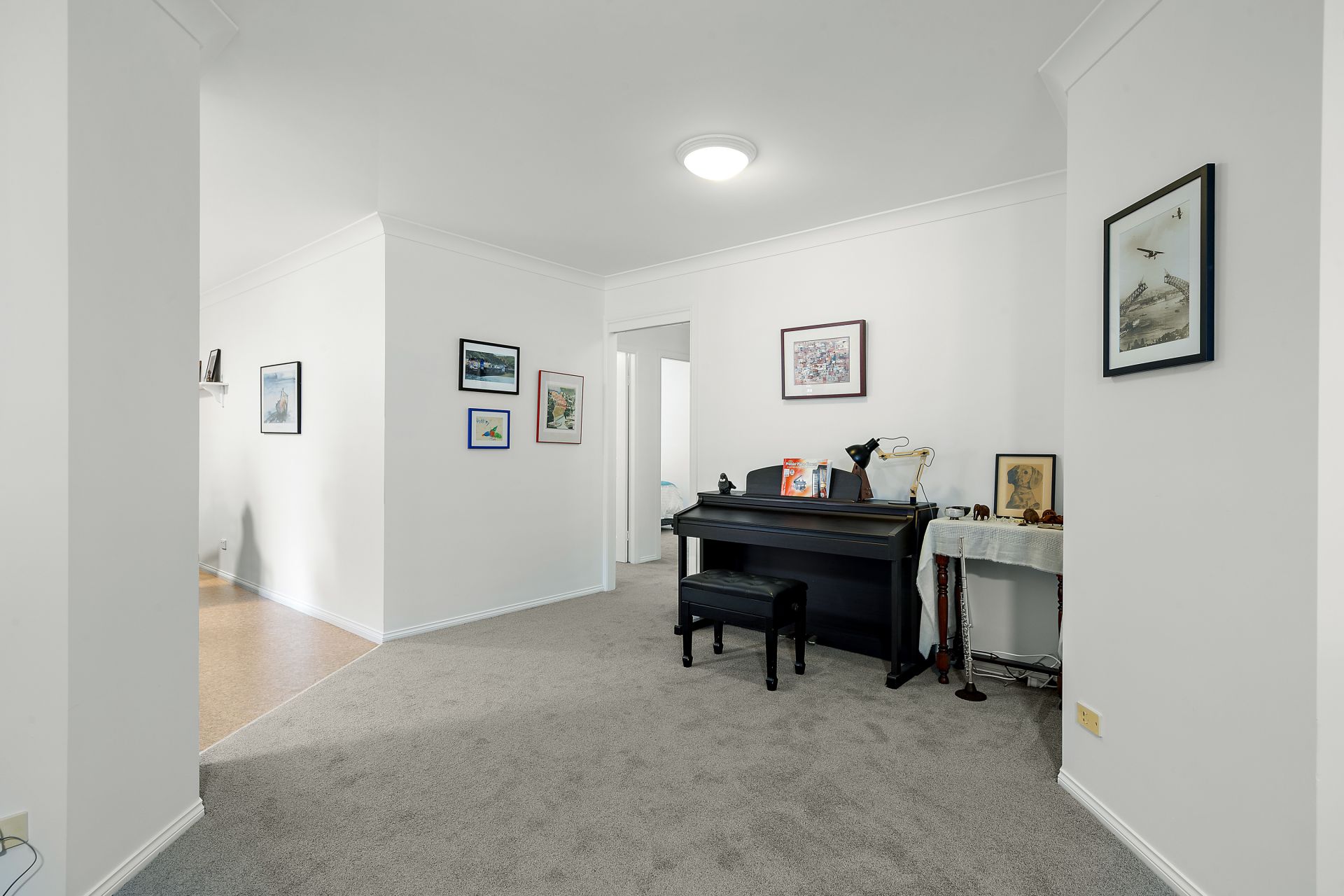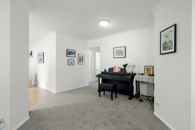 * Large dining and living areas along with a study nook.