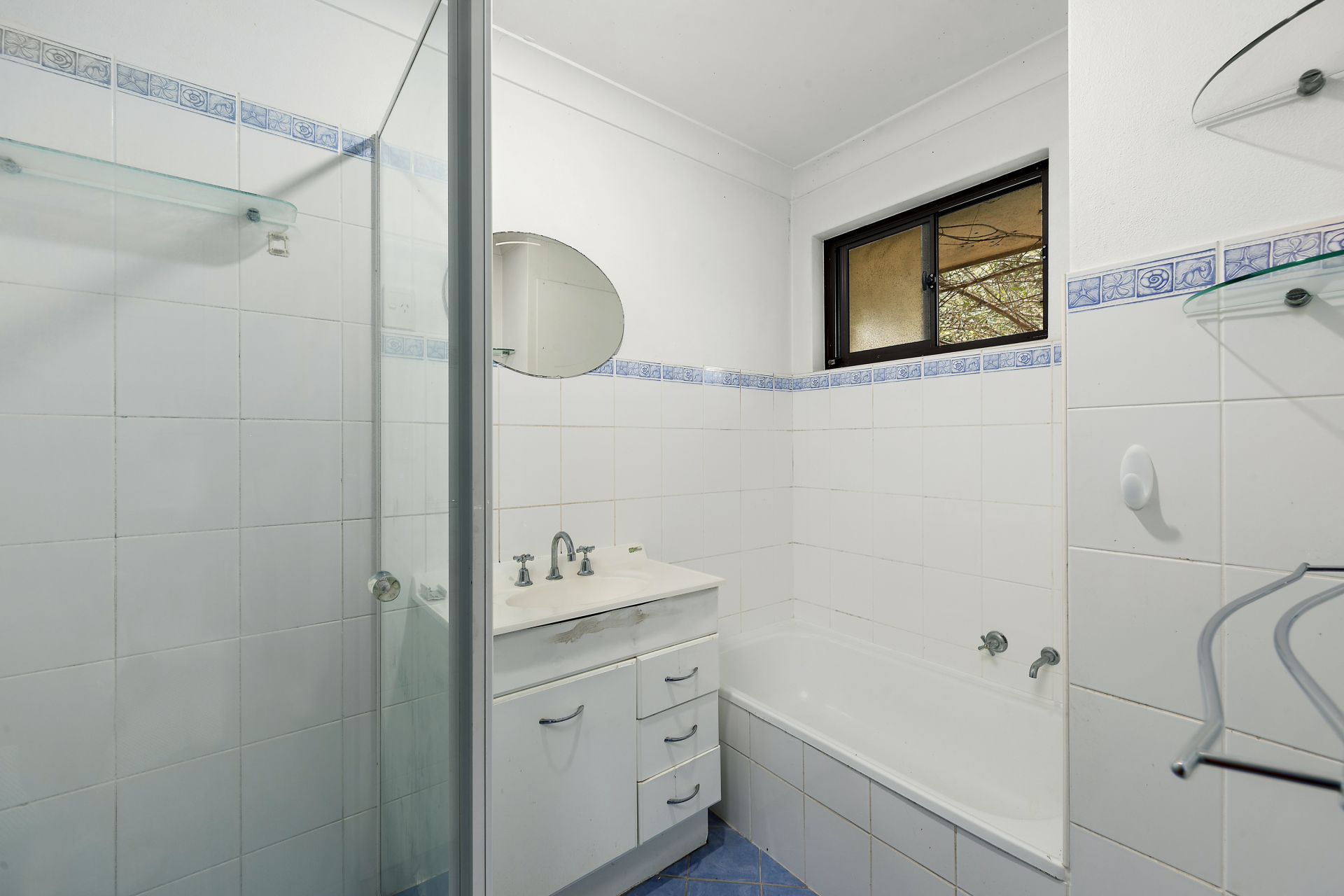 • Well-maintained bathroom with shower and separate bathtub