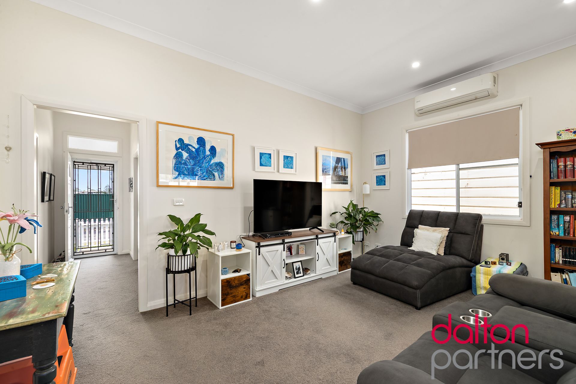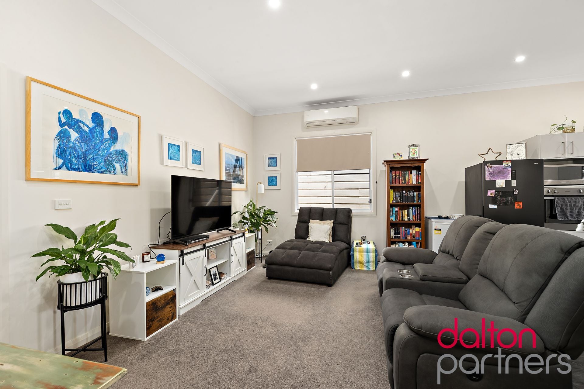 * Open plan living zone boasts split-system AC and plush carpet underfoot