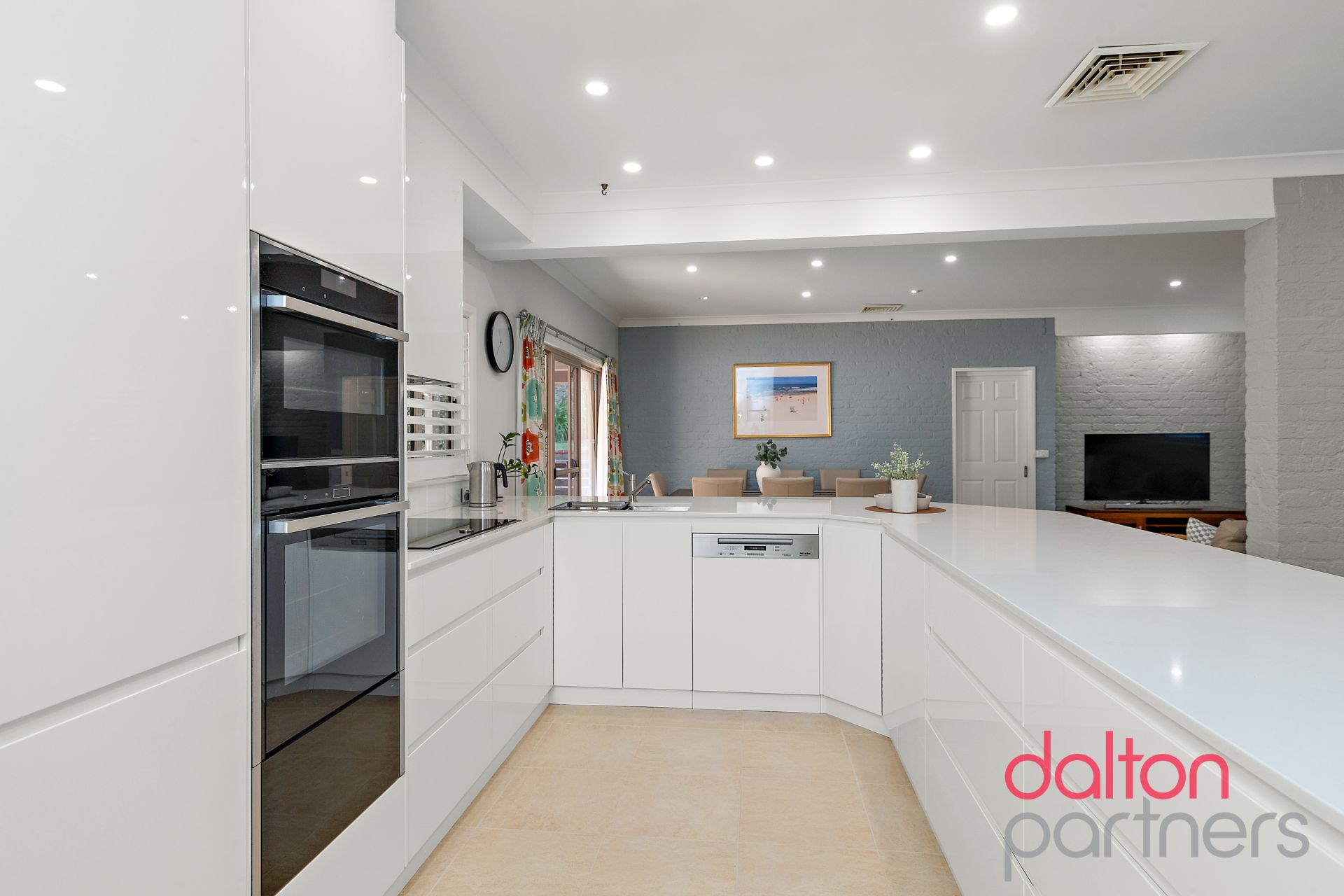 * Stylish white-on-white kitchen boasts stone benches, walk-in pantry plus stainless-steel appliances
