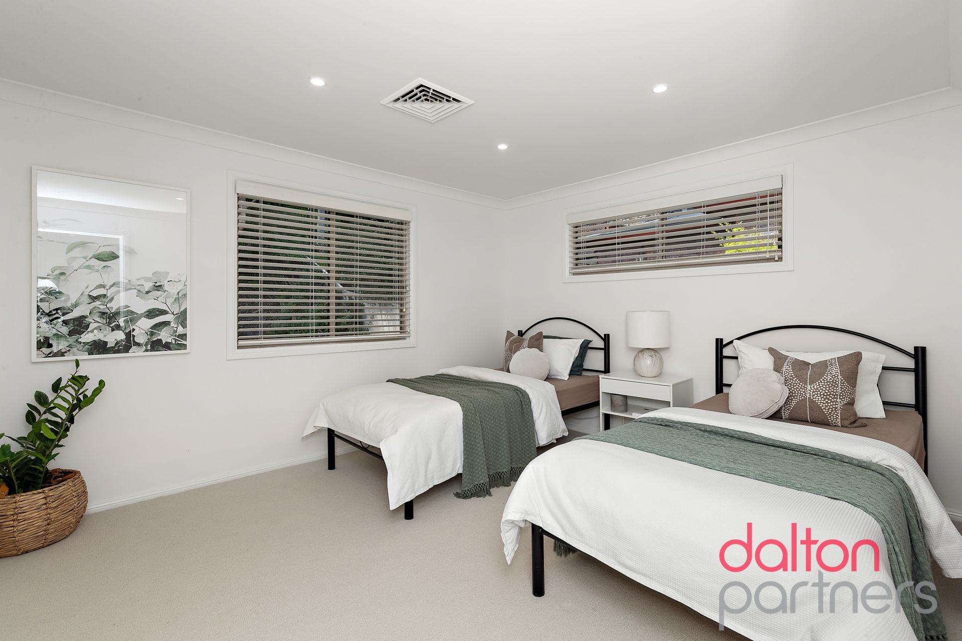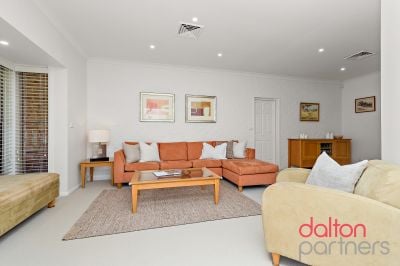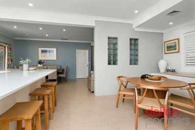 * Lounge room with bay windows, open-plan features dining area with study nook