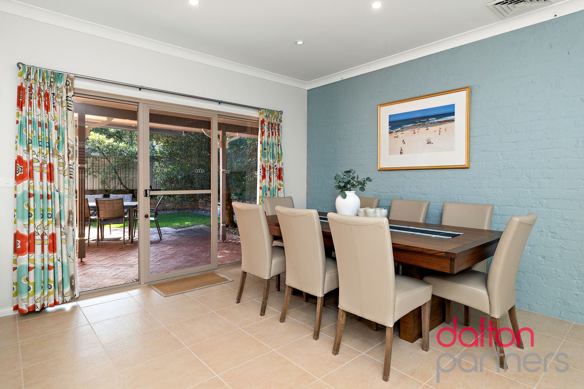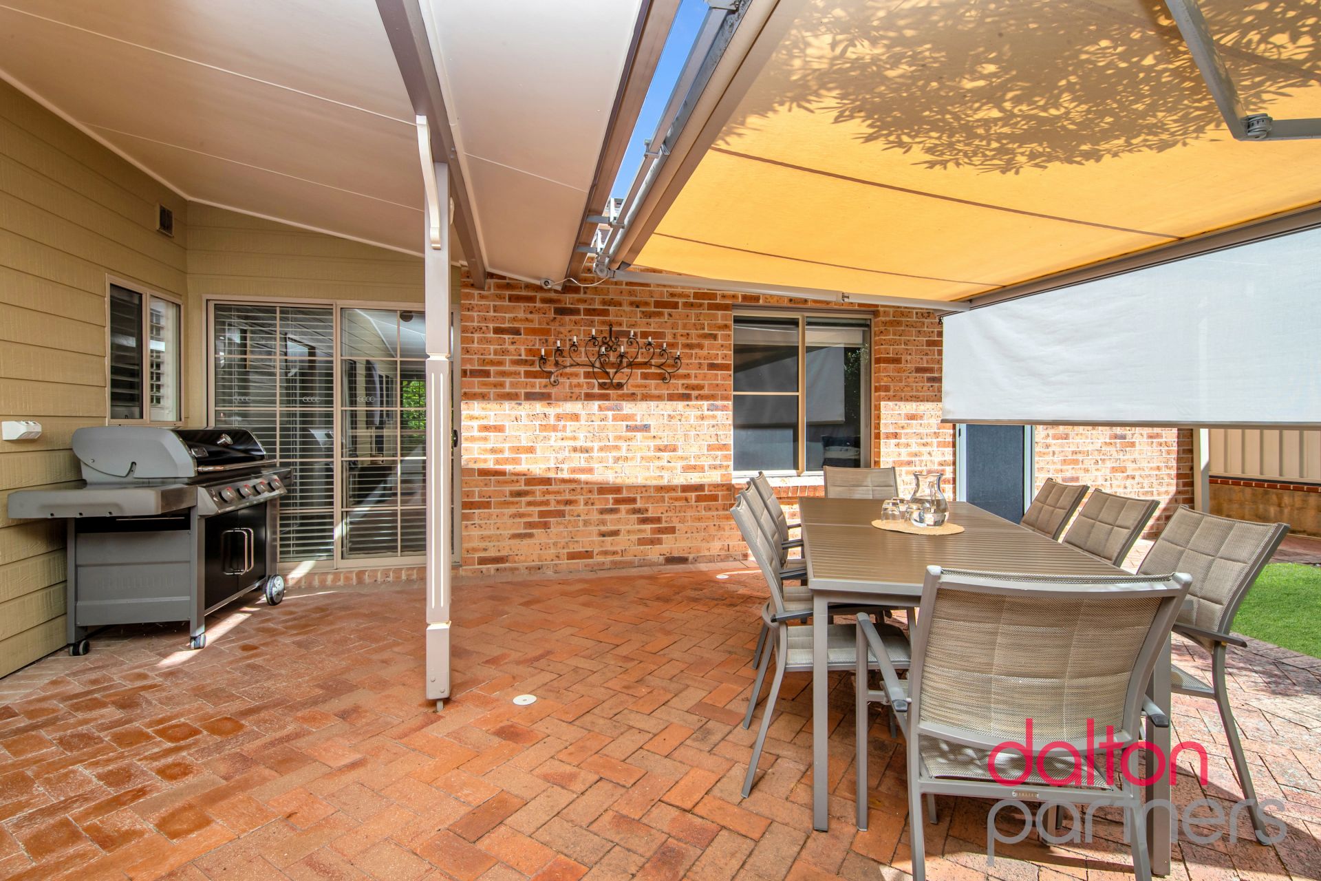 * Easy flow out to patio dining with roll-back awning overlooking verdant backyard