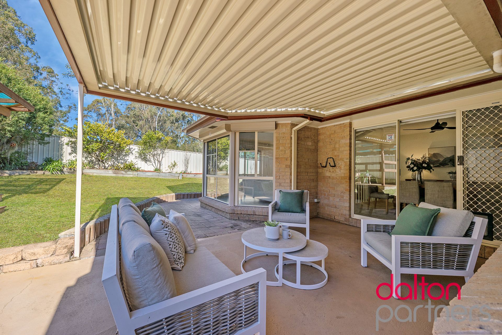 * Covered alfresco zone beneath an Eclipse opening pergola, tailor-made for entertaining