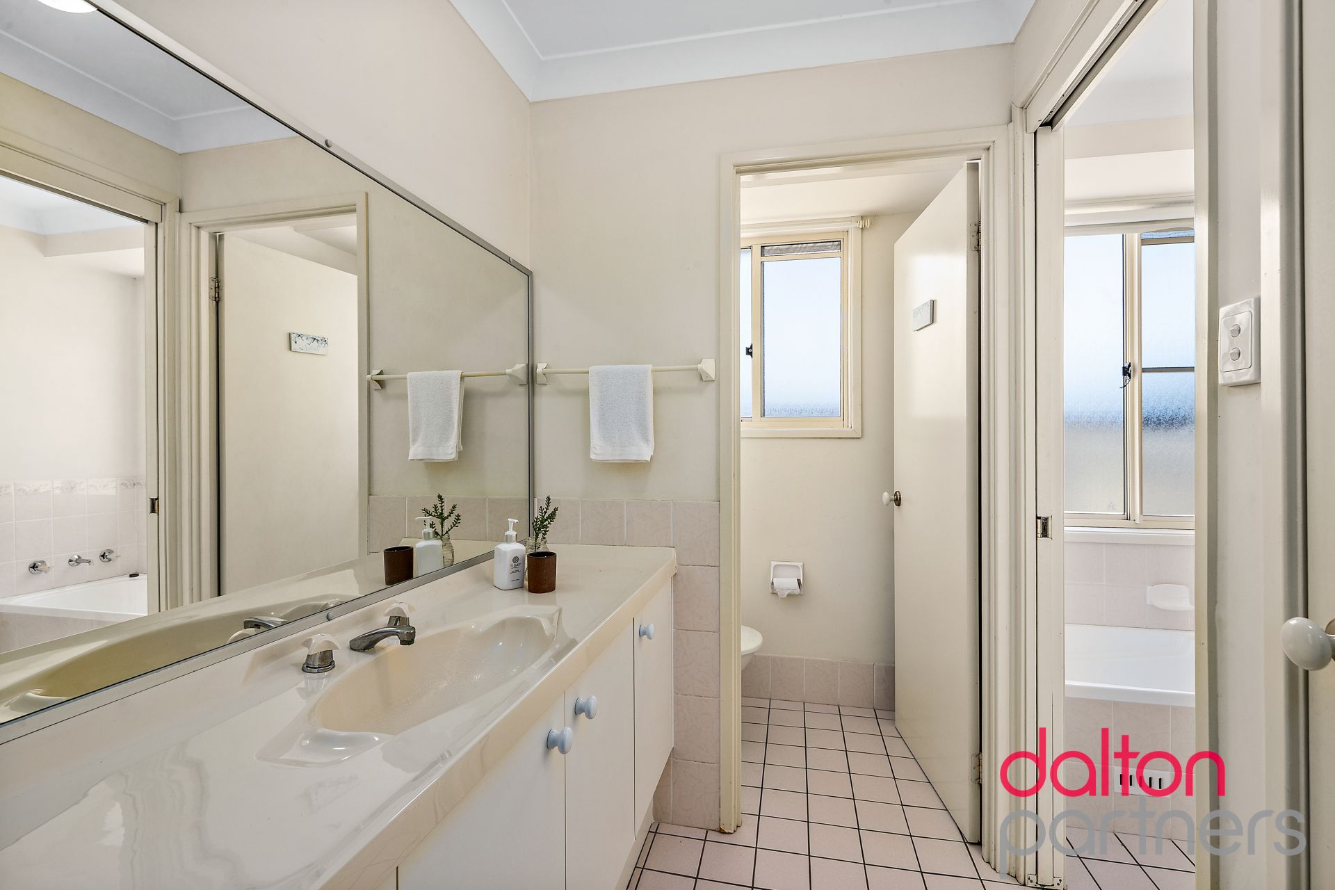 * Main bathroom with a practical three-way layout to suit busy households